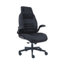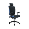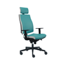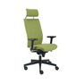 Stolička disponuje vysokým priedušným operadlom s integrovaným podhlavníkom.